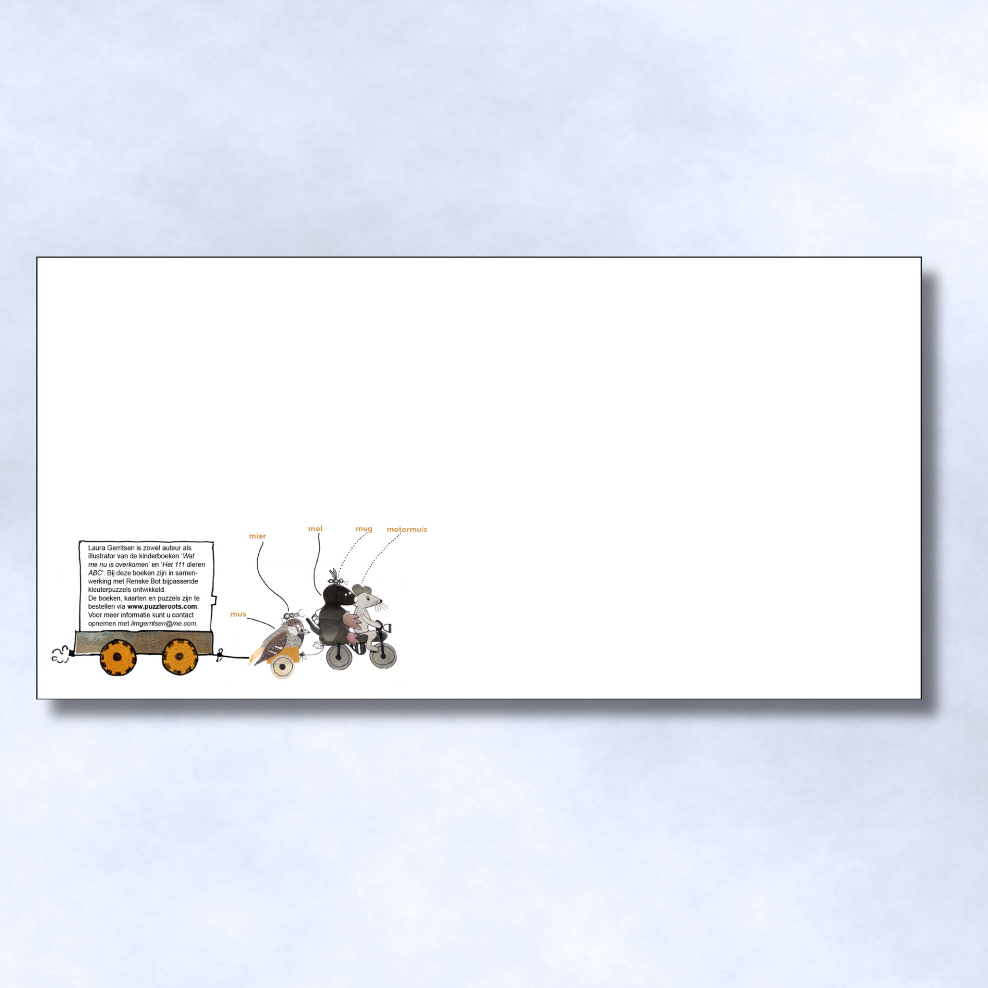 Hij kan gebruikt worden voor o.a. een geboorte of verjaardag. De illustraties op de kaart zijn van Laura Gerritsen. De kaart is in samenwerking gemaakt met Puzzle Roots.