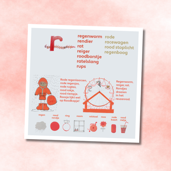 Letter wenskaart met de letter r met witte enveloppe