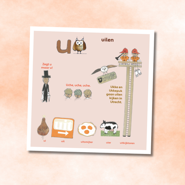 Letter wenskaart met de letter u met witte enveloppe
