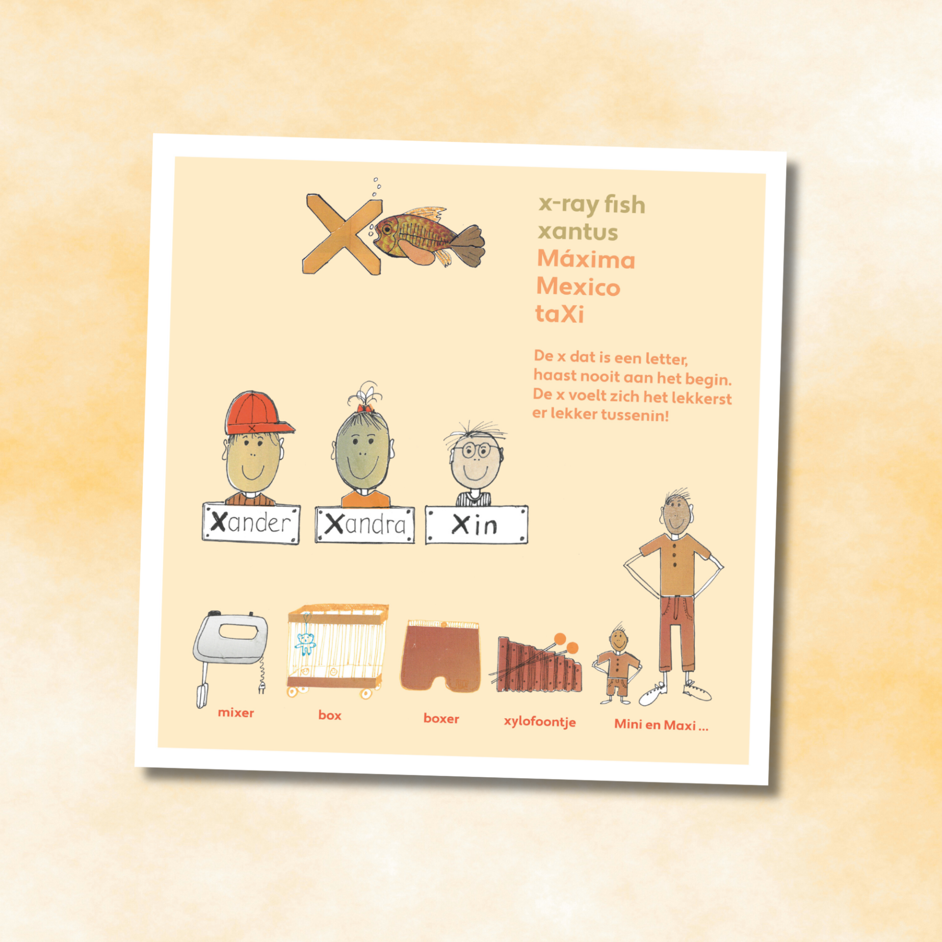Letter wenskaart met de letter x met witte enveloppe