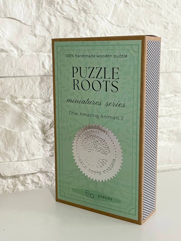 This mini wooden jigsaw puzzle has approximately 80 pieces.
