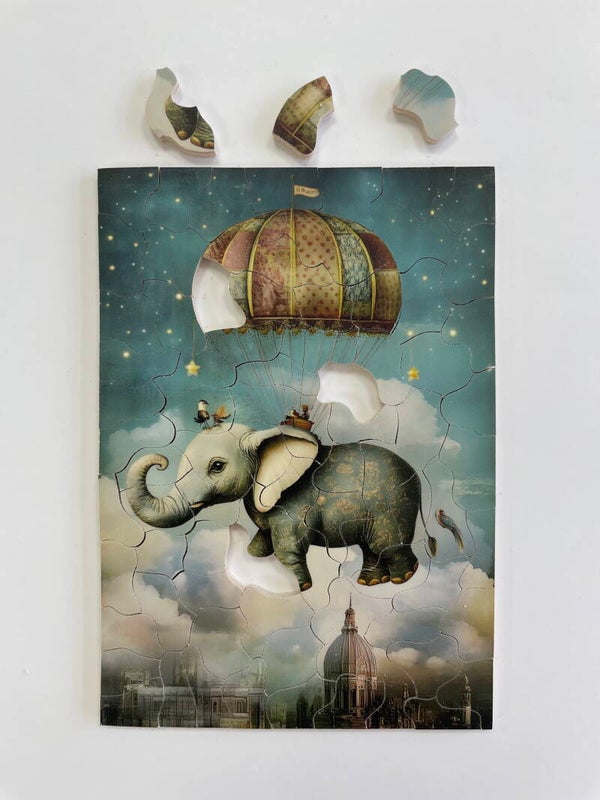 This mini wooden jigsaw puzzle has approximately 80 pieces.