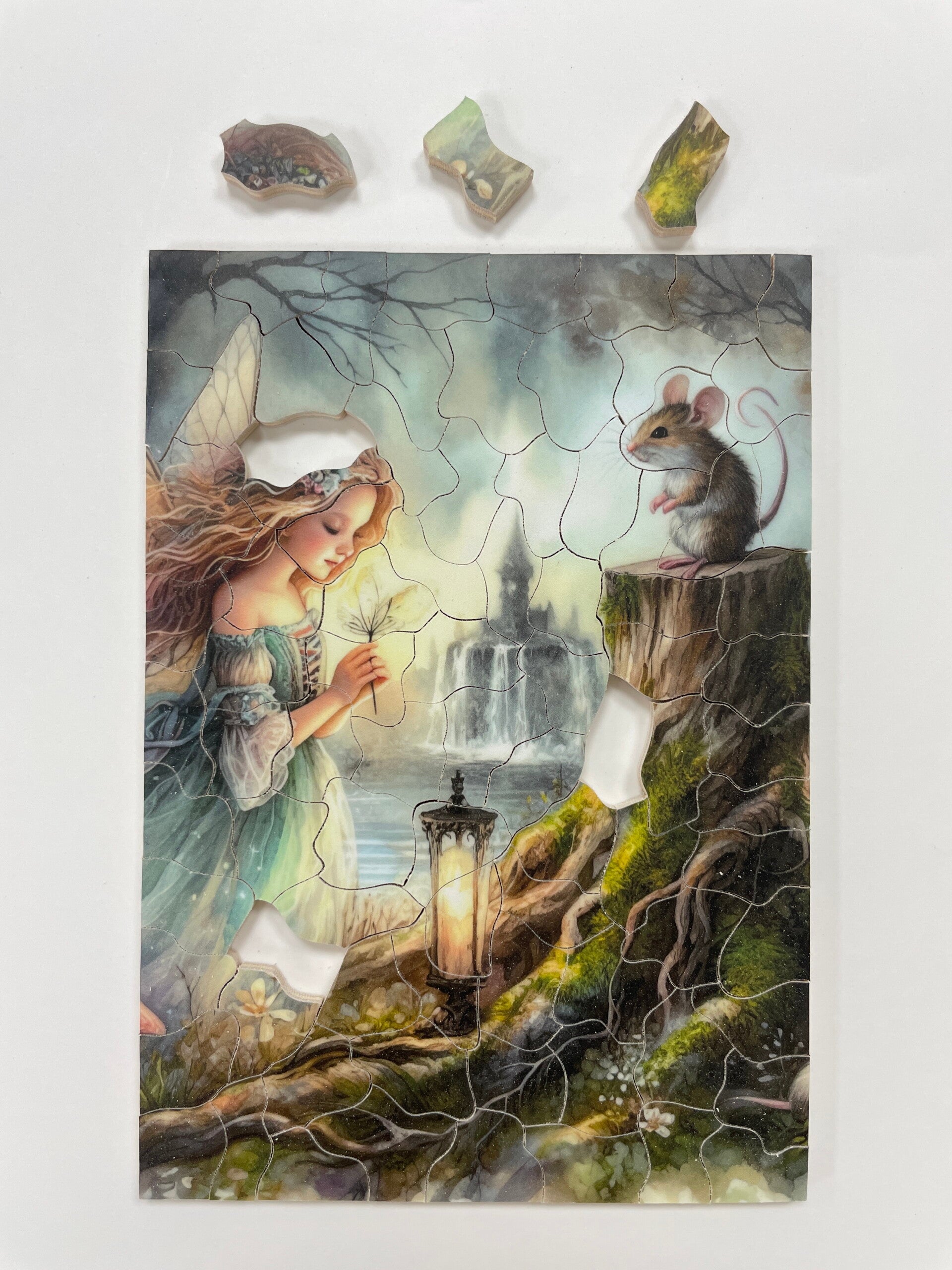 Deze mini houten puzzel heeft ong. 80 stukjes.